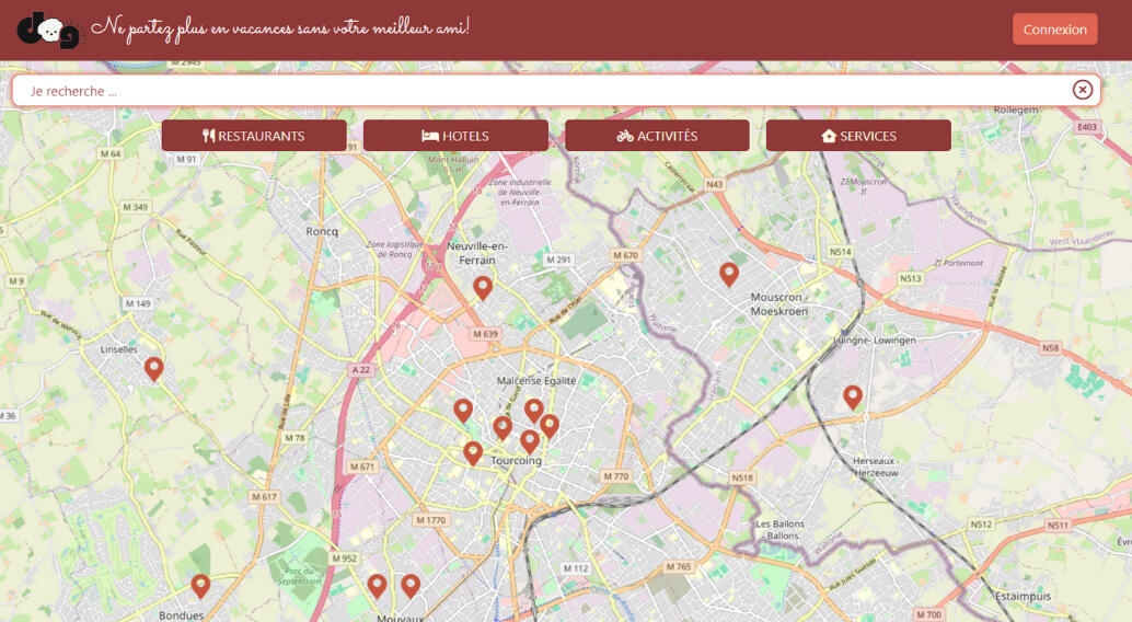 Easily find the best places where your dog is welcome, close to home or while traveling.